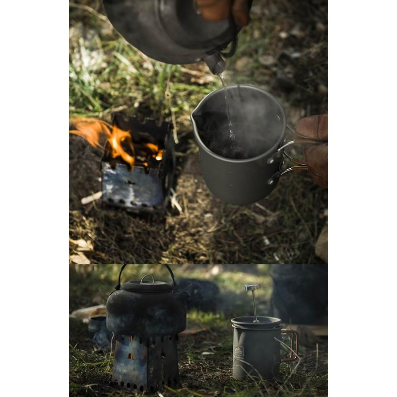 Duża pojemność 600ml pozwoli na przygotowanie 2-3 porcji kawy jednocześnie. Wytłoczona podziałka na ściance bocznej ułatwia odmierzenie odpowiedniej ilości wody. Składany oraz izolowany termicznie uchwyt ułatwia transportowanie oraz zabezpiecza przed oparzeniami. Niska masa nie obciąży Twojego plecaka.