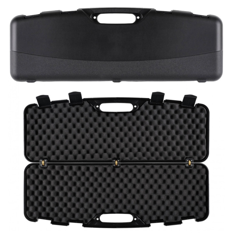 o wymiarach 82x25x8 cm to duża walizka przeznaczona do transportu broni, z wnętrzem wyściełanym pianką oraz systemem zamykania za pomocą 4 solidnych klamer. Kufer będzie doskonałym wyborem do transportu rozłożonej strzelby typu bock.